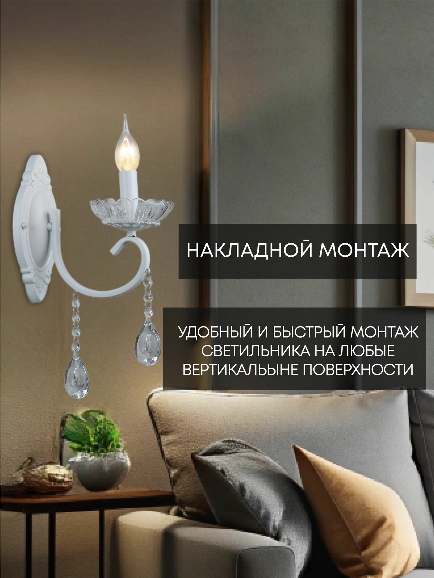 10 цен на Бра настенный светильник светодиодный белый/хрусталь 1х40W Е14