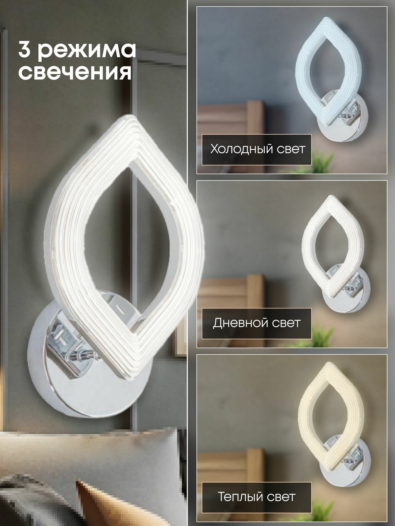 Бра настенный светильник светодиодный LED 16Вт 3000K-6000K хром 2 404 ₽