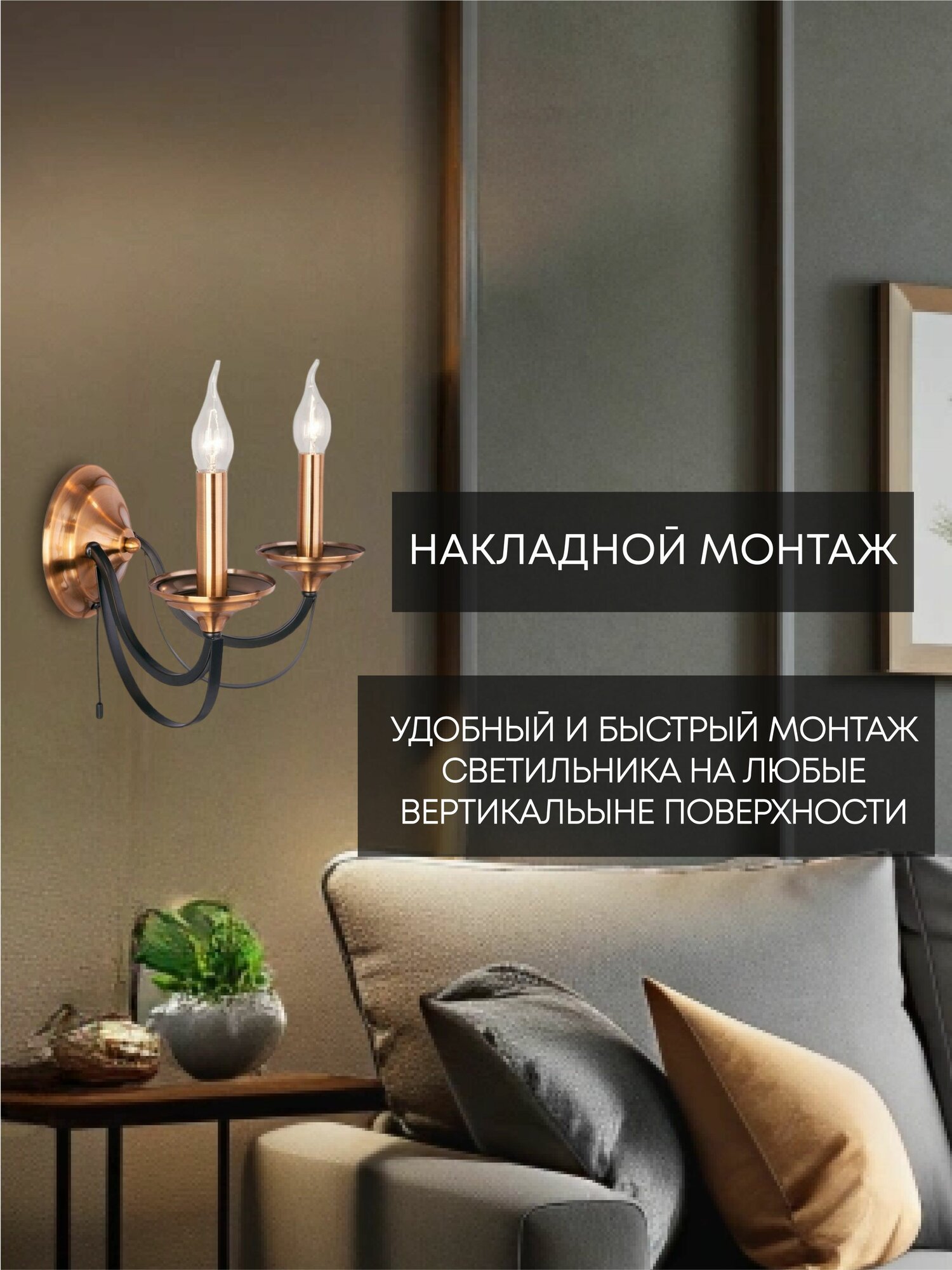 Отзывы на Бра настенный светильник светодиодный черный /бронза 40W E14 h205