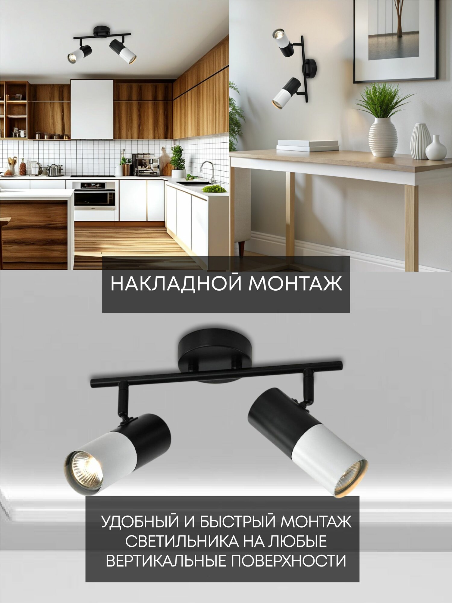 Спот настенный светильник светодиодный черный/белый 2x25W GU10 h13см информация: