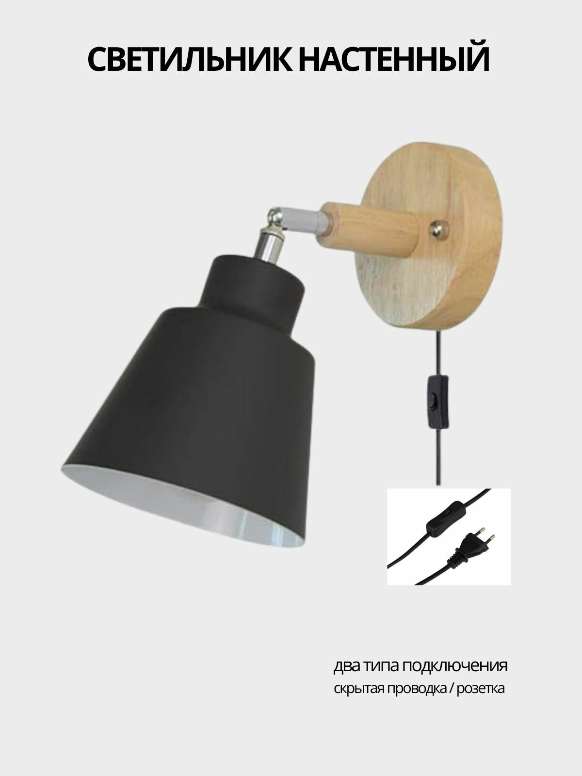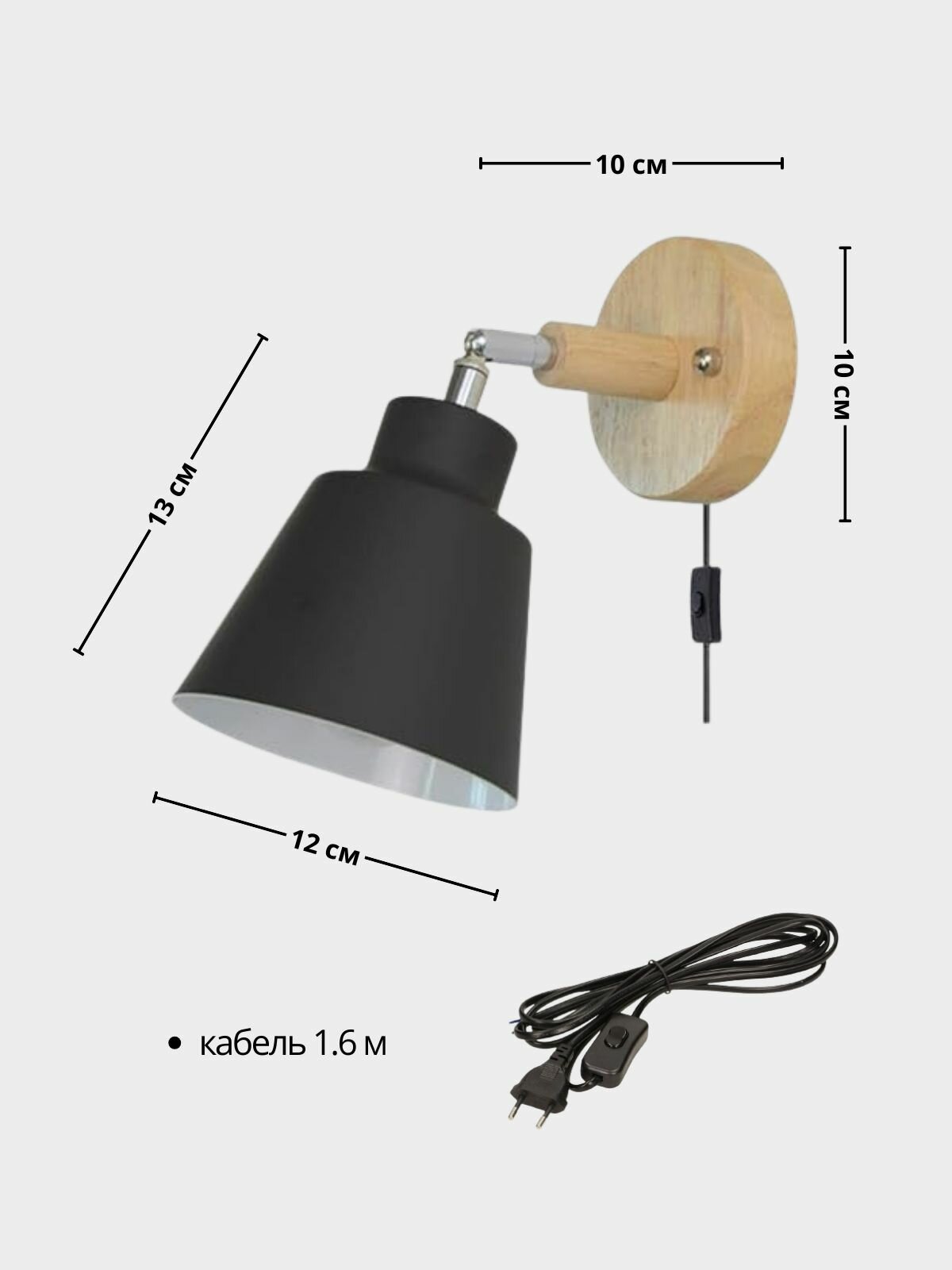 10 цен на Светильник настенный бра с выключателем под лампу Е27, черный/дерево