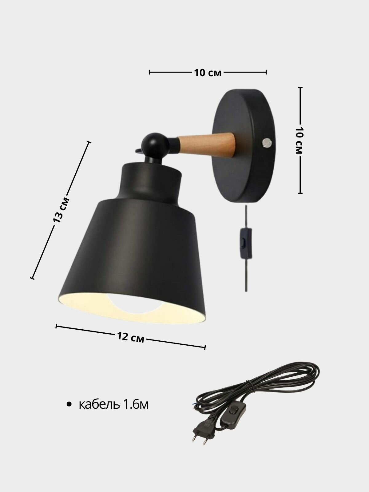 10 цен на Светильник настенный бра с выключателем под лампу Е27, черный