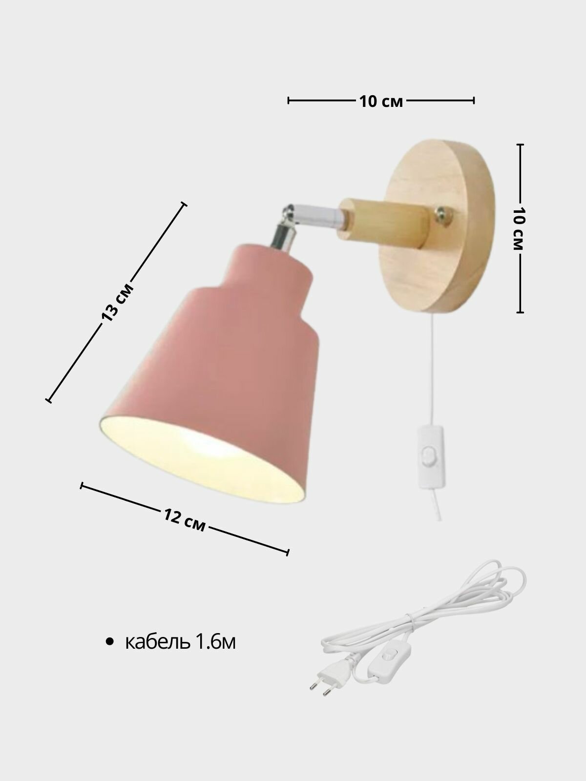 Отзывы на Светильник настенный бра с выключателем под лампу Е27, розовый/дерево