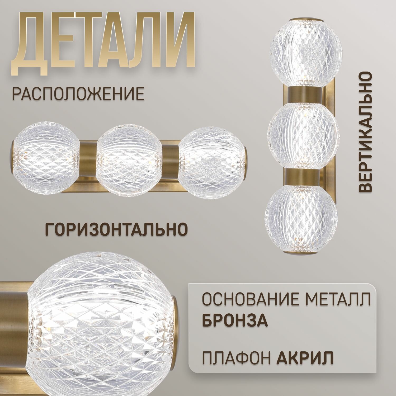 Светильник настенный, бра настенные, 6 Вт, 43 см, трехцветный меняющийся свет