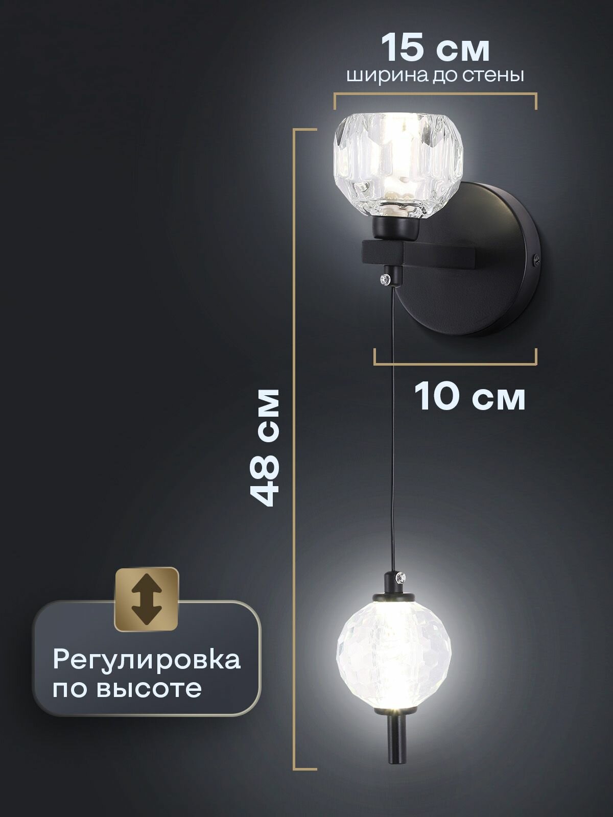 Бра настенные светодиодные, светильник настенный ЭлисСвет 20132ZS/1W BK информация: