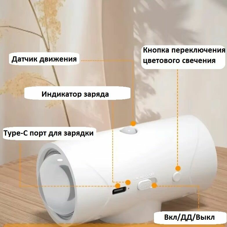 Светодиодный беспроводной светильник с датчиком движения Smart Night Light, на магните, белый, на аккумуляторе, ночник информация:
