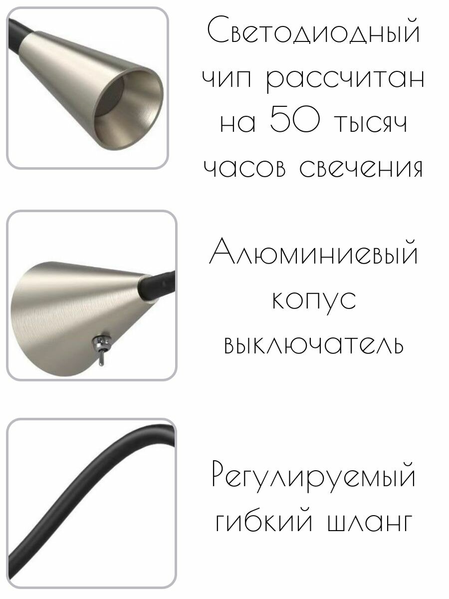 Светодиодная настенная лампа с выключателем, Бра гибкий для спальни, гостиной, кухни Wogow Серебро информация: