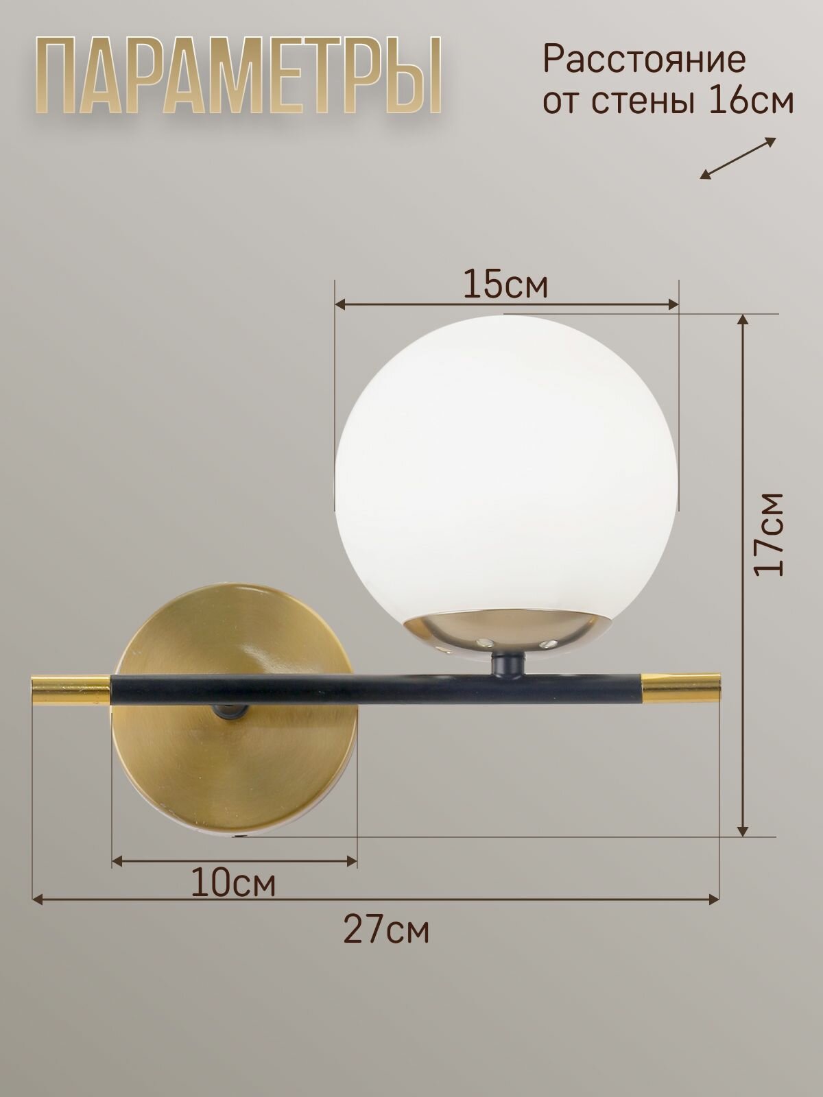Отзывы на Бра настенные ЭлисСвет светильник круглый, 10137 -B LA/2W-150 BK+WT