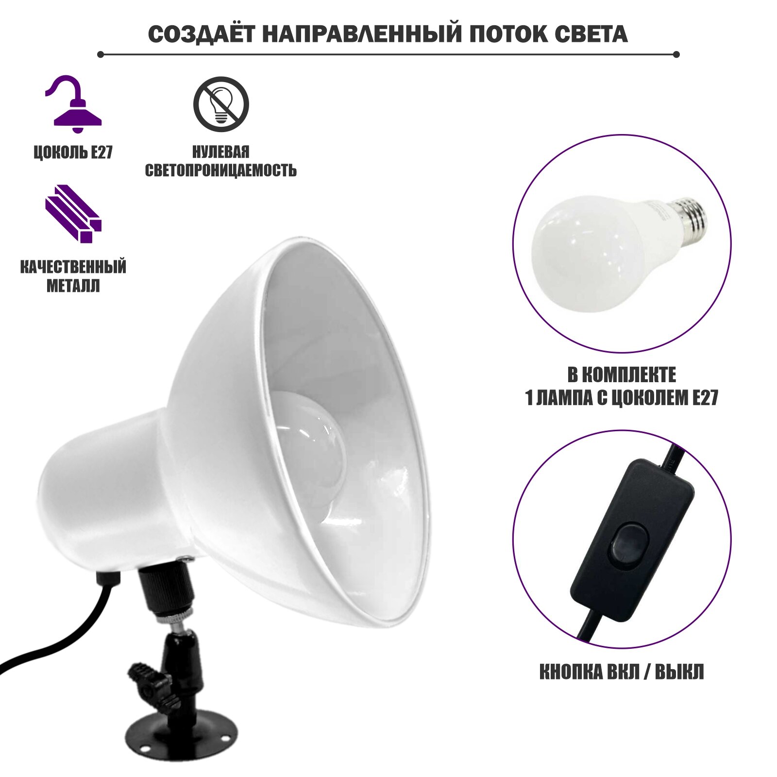 Отзывы на Настенный светильник AB-NKM-W с белым средним абажуром с регулировкой угла наклона