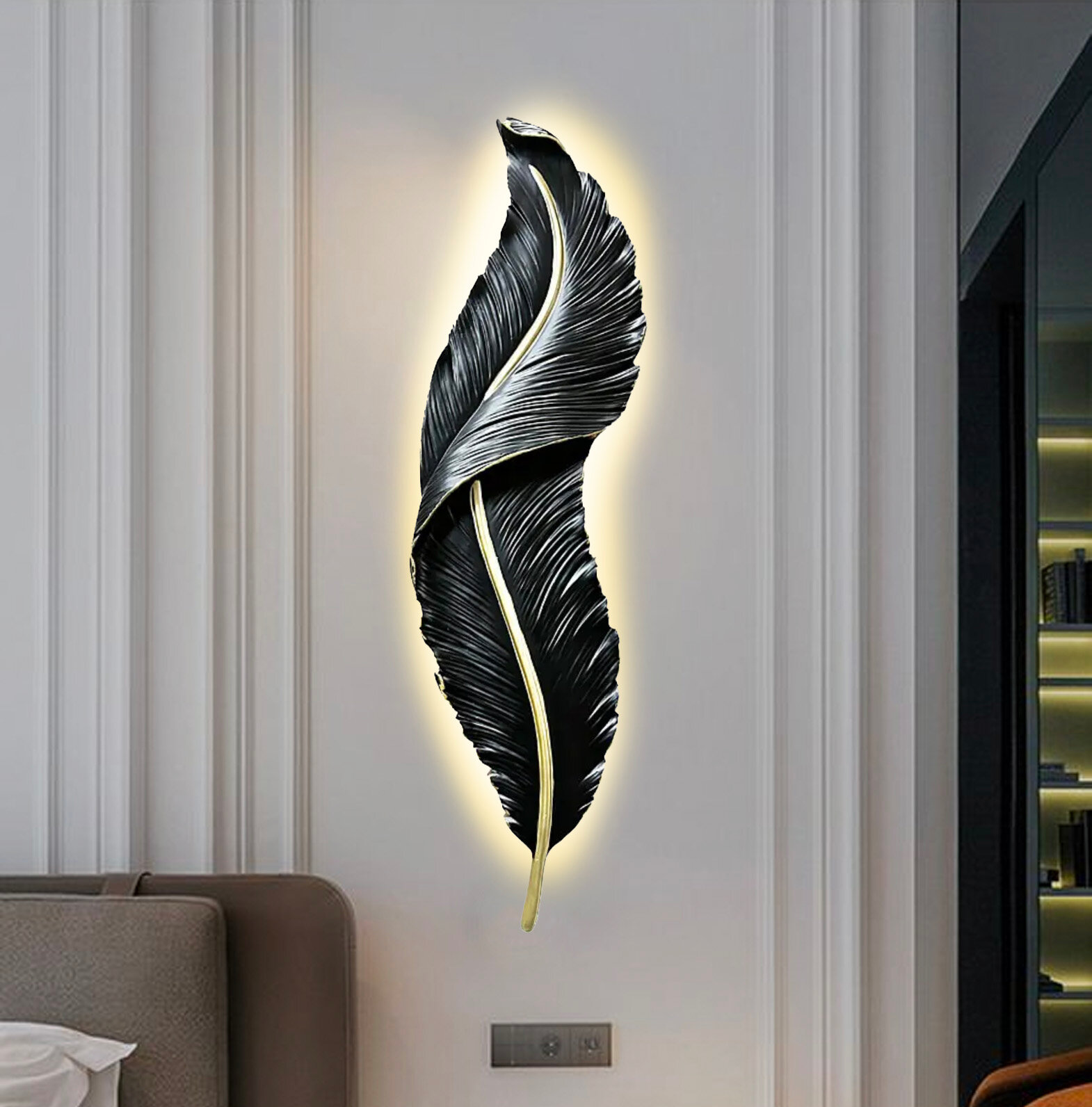 Отзывы на Светильник светодиодный настенный Plume черный с золотом, 65x18 см