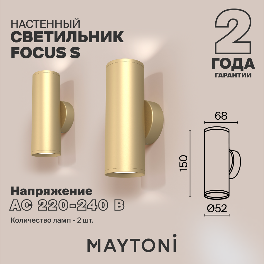 Отзывы на Настенный светильник бра золотой Maytoni Technical FOCUS S C068WL-02MG