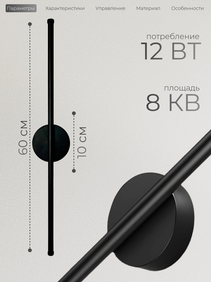 Управляемый светодиодный светильник, бра MISTER 25W S-ON/OFF- BLACK
