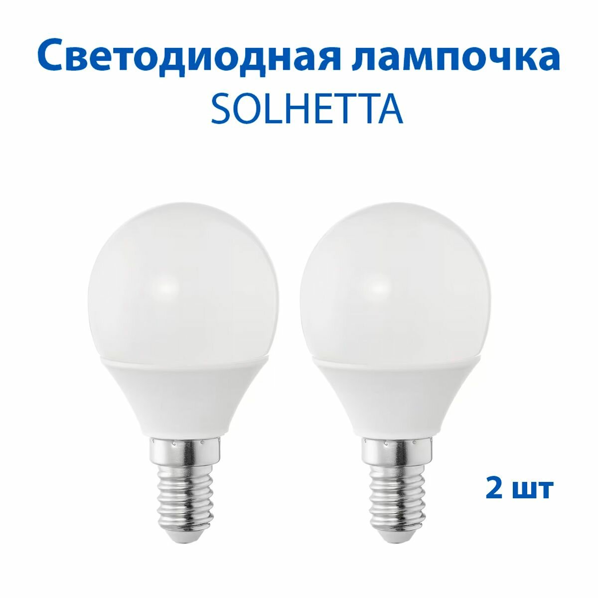 Светодиодная лампочка IKEA SOLHETTA (солхетта), E14, 250 lumen, цвет белый, 1.8 Вт, 2 шт в наборе информация: