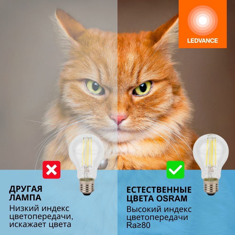 Отзывы на Филаментная лампа Е27 OSRAM LED STAR, 5 шт, 7,5Вт, 4000К нейтральный белый свет, 1055лм, колба А100 прозрачная стекло