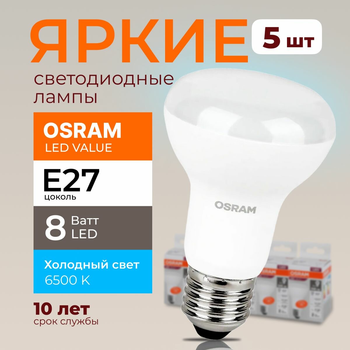 Отзывы на Светодиодная лампочка OSRAM E27 8 Ватт 6500К холодный свет R63 гриб 230V LED 865, 8W, 640lm, набор 5шт