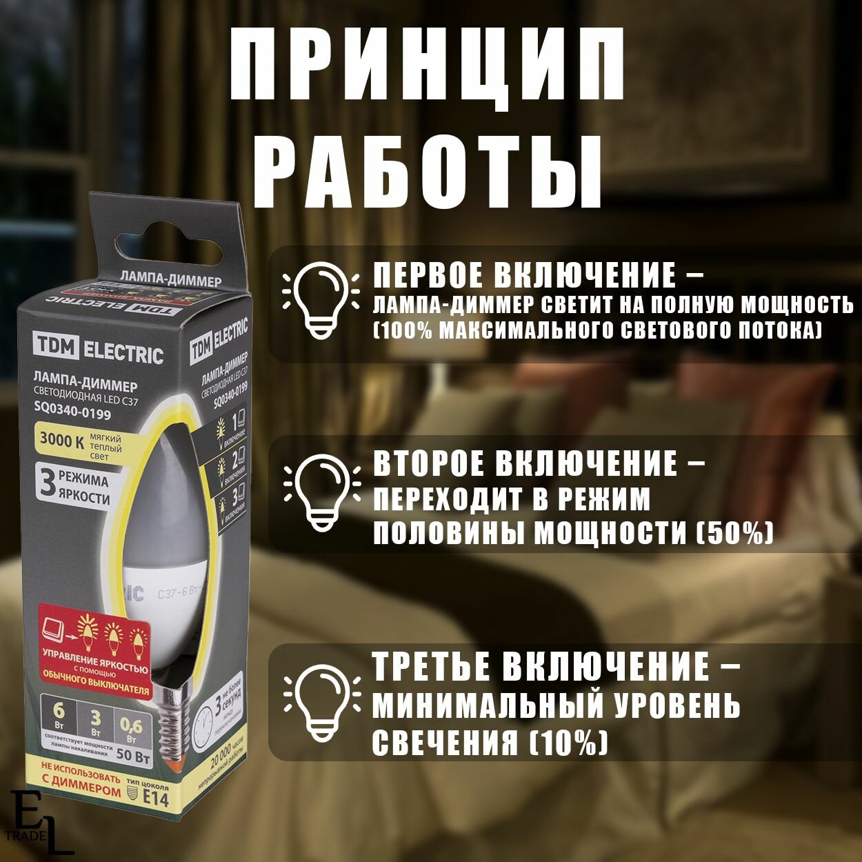 Лампа диммер светодиодная 6 Вт, 230 В, 3000 К, E14, 3 режима, TDM ELECTRIC, комплект из 2 ШТ информация: