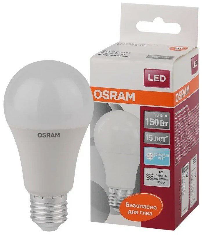 Отзывы на 10шт/уп. Лампа LED Груша 13Вт 220-240V E27 1521Лм 4000К Угол 200 град. D-60mm L-118mm Свет Дневной белый OSRAM, уп. 10шт
