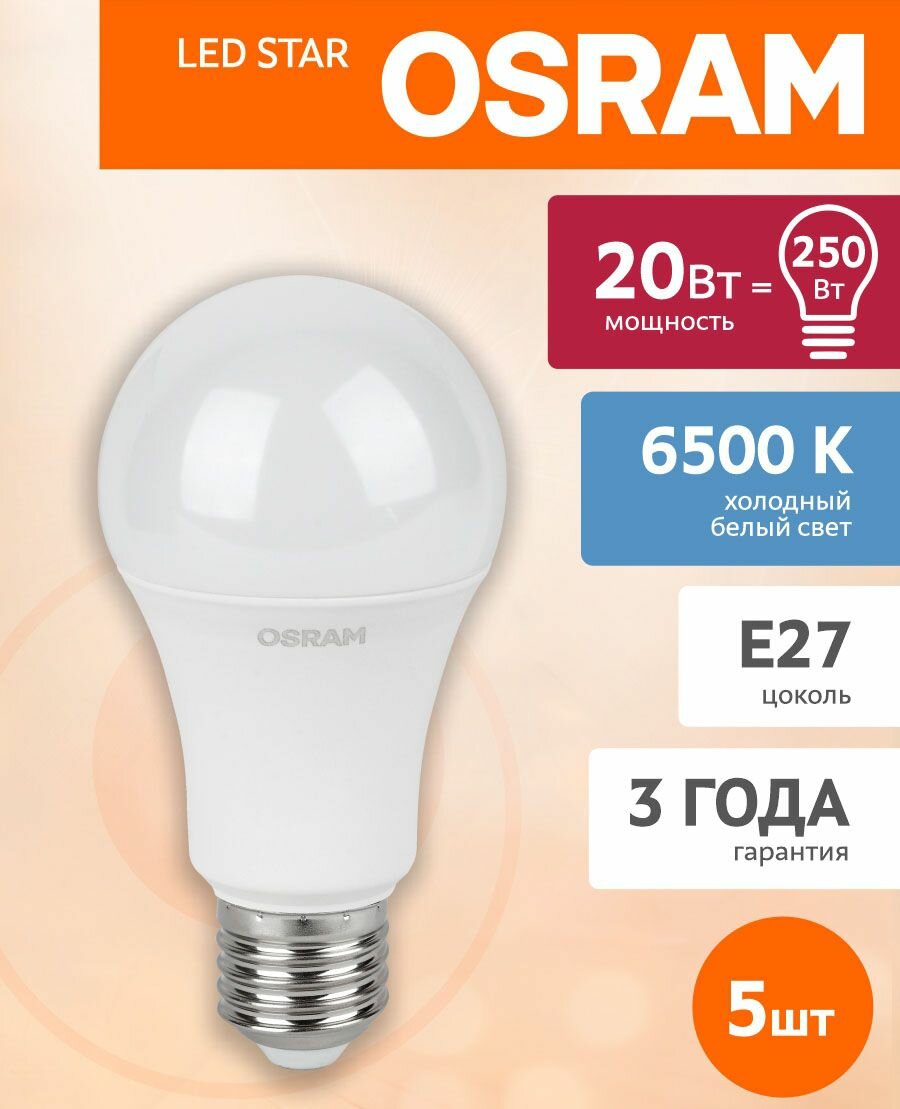 10 цен на Лампочка светодиодная LED OSRAM "Груша" E27 20Вт 6500К, Холодный белый (набор 5 штук)