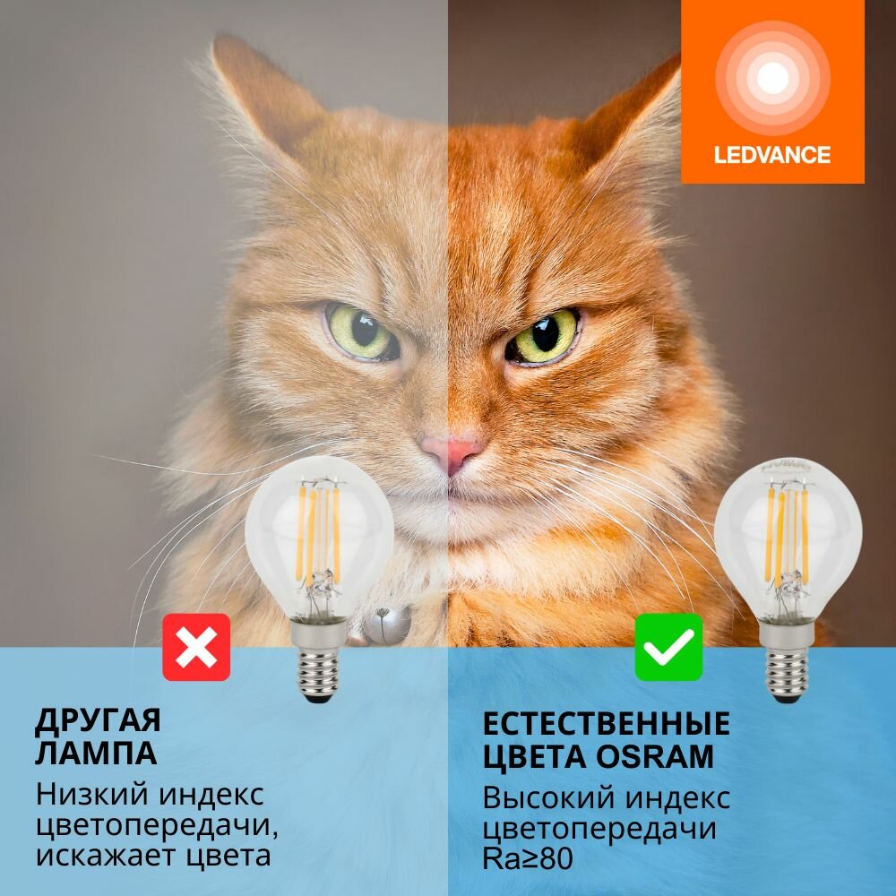 Отзывы на Лампочки светодиодные филаментные OSRAM LED STAR, 5Вт, 5 шт в наборе, Е14, 6500К холодный белый свет, 600лм, колба P шар прозрачная стекло