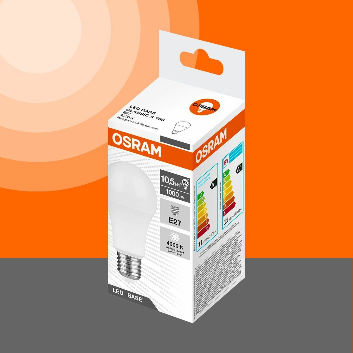 Отзывы на Лампочка светодиодная Е27 Osram LED BASE 10Вт замена 100 Вт, 4000К дневной свет, 1000лм, матовая, груша, 3 шт
