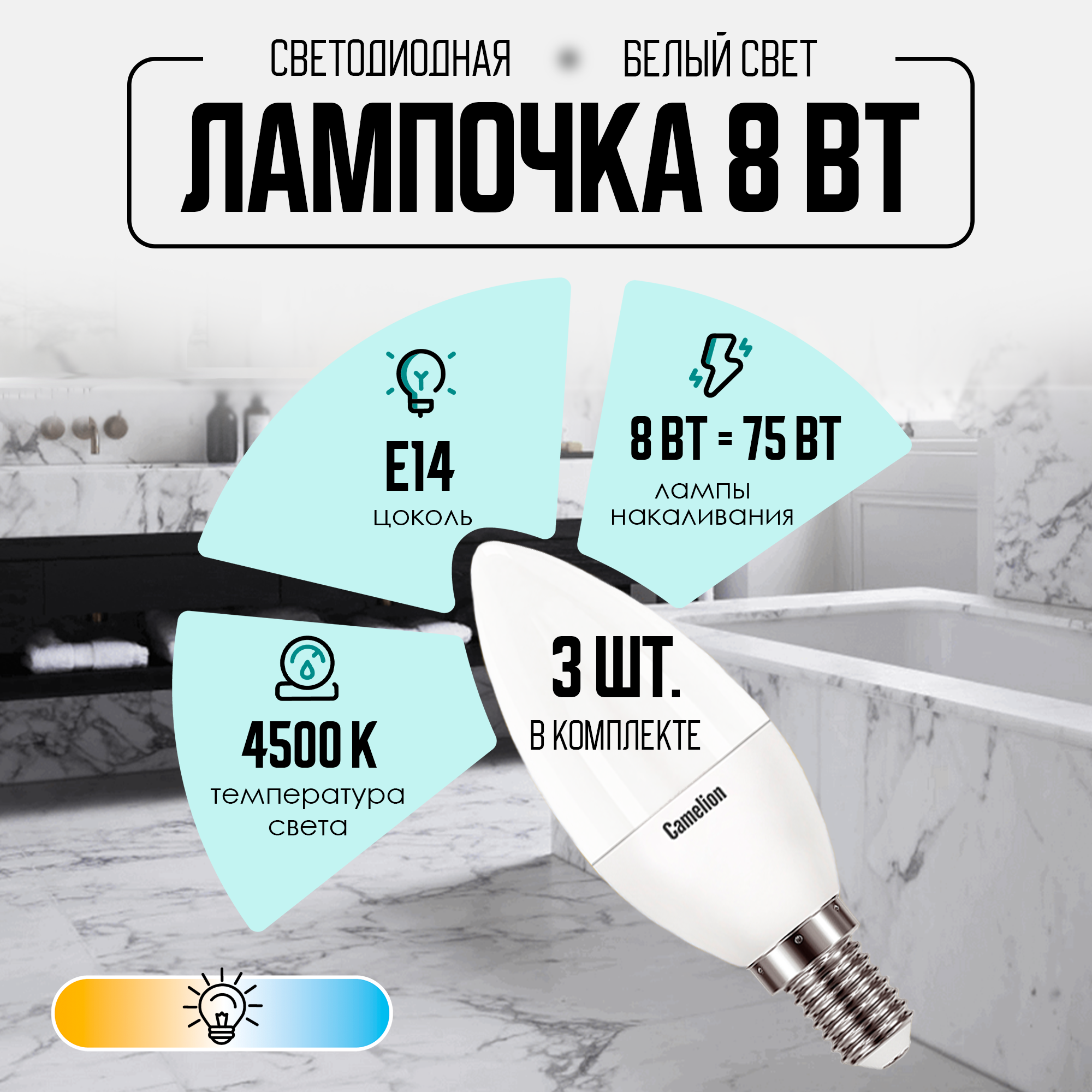 Лампочка светодиодная Camelion LED8 845 E14 промо 3 штук в упаковке информация: