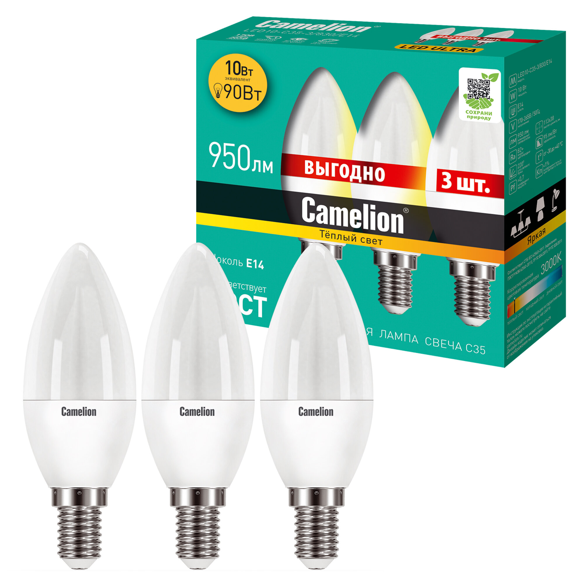 10 цен на Лампочка светодиодная Camelion LED10 E14 830 промо 3 штуки в упаковке