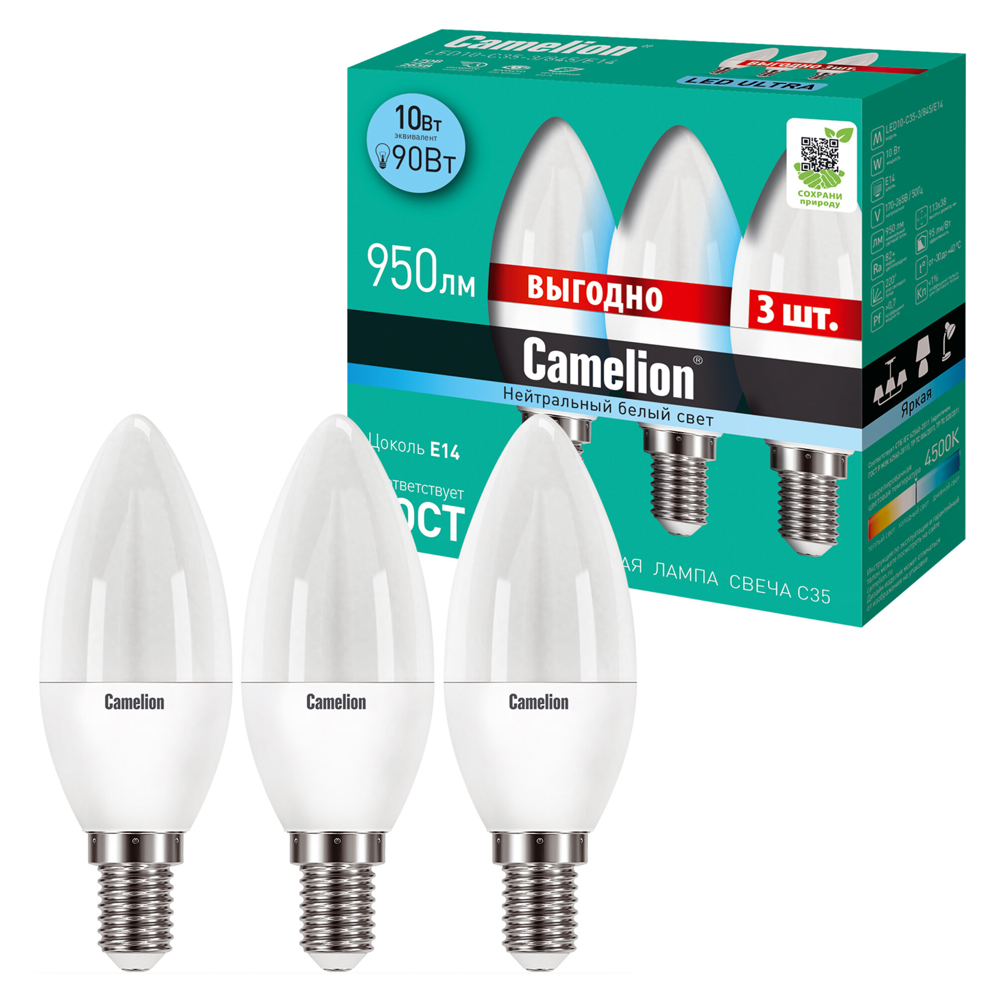 10 цен на Лампочка светодиодная Camelion LED10 E14 845 промо 3 штуки в упаковке