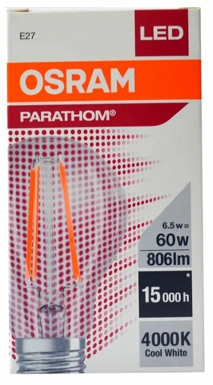 Отзывы на 3шт/уп. Лампа LED Груша 6.5W 230V E27 806Лм 4000К Угол 300 град. D-60mm L-105mm. Лампа Филамент. Свет Дневной белый OSRAM, уп. 3шт