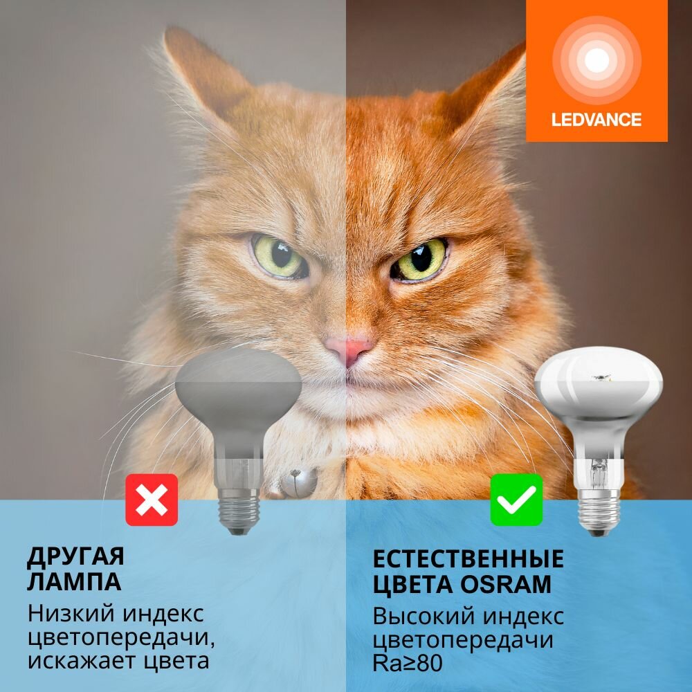 Отзывы на Лампочки светодиодные OSRAM LED STAR, 4Вт, 5 шт в наборе, Е27, 2700К теплый белый свет, 360лм, колба R80 прозрачная стекло