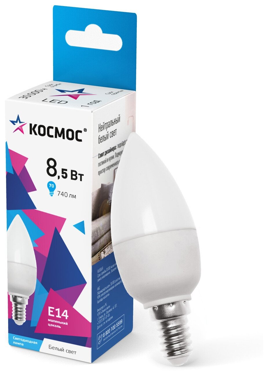 5 шт Лампа светодиодная КОСМОС Basic CN 4500K, E14, 8.5 Вт, 4500 К информация: