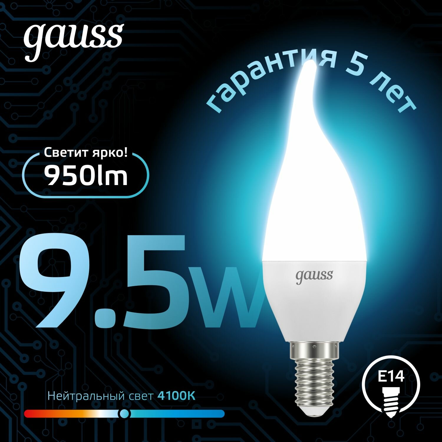 Отзывы на Лампочка светодиодная Е14 Свеча на ветру 9.5W нейтр белый свет 4100К упаковка 10 шт. Gauss Black