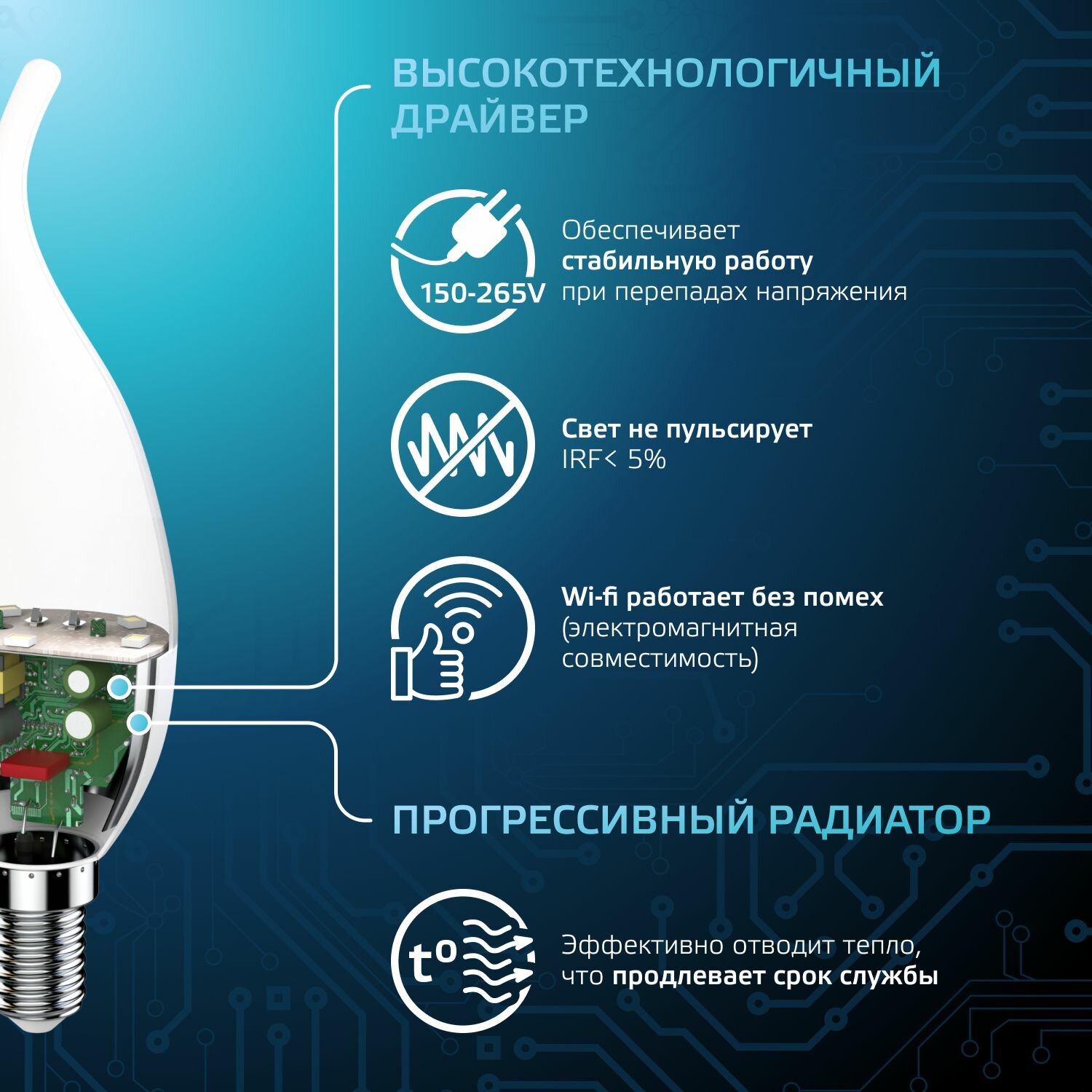 Отзывы на Лампочка светодиодная Е14 Свеча на ветру 6.5W нейтр белый свет 4100К упаковка 10 шт. Gauss Black