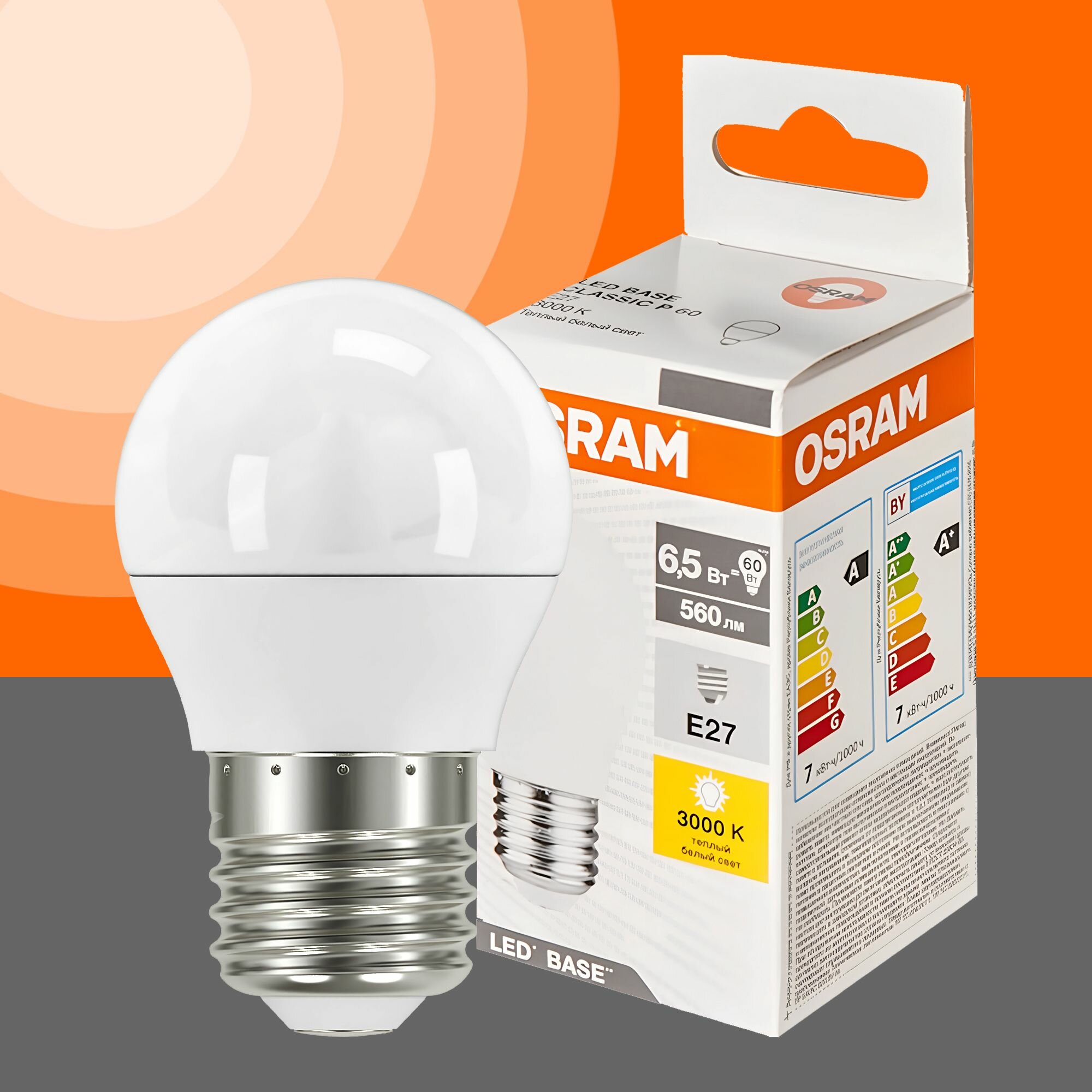Отзывы на Лампочки светодиодные OSRAM LED Base P, 6,5Вт замена 60Вт, 3000К 560лм теплый свет, E27, шар, 5 штук