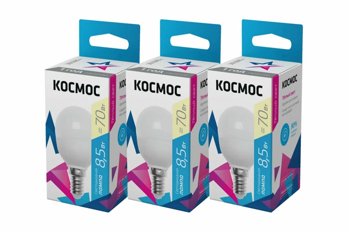 10 цен на Лампа светодиодная GL45 8.5Вт 220В E14 3000К Космос LkecLED8.5wGL45E1430(3 штук.)