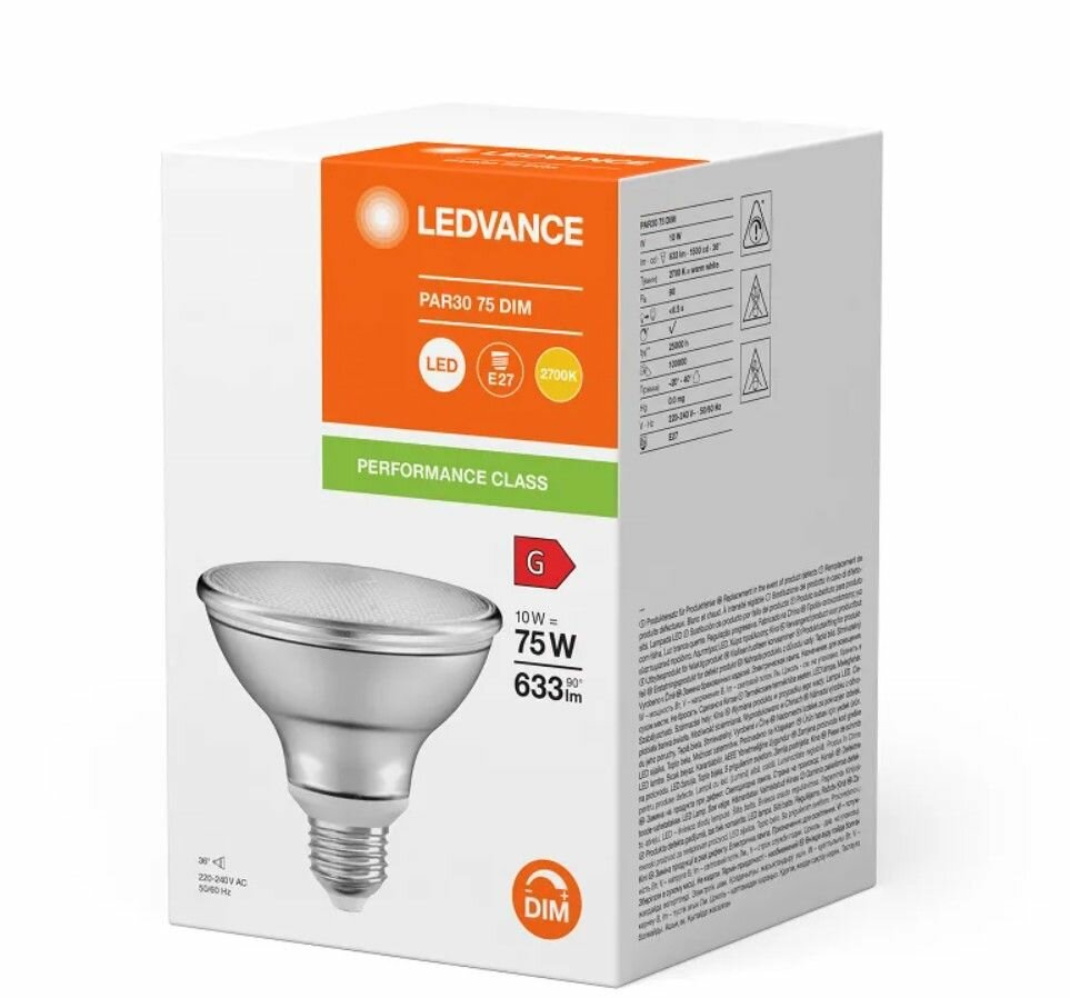 Отзывы на 1шт/уп. Лампа LED Спот PAR30 10W 230V E27 2700К 633Лм Угол 36 град. d95*93mm Диммируемая Свет Теплый белый OSRAM, уп. 1шт
