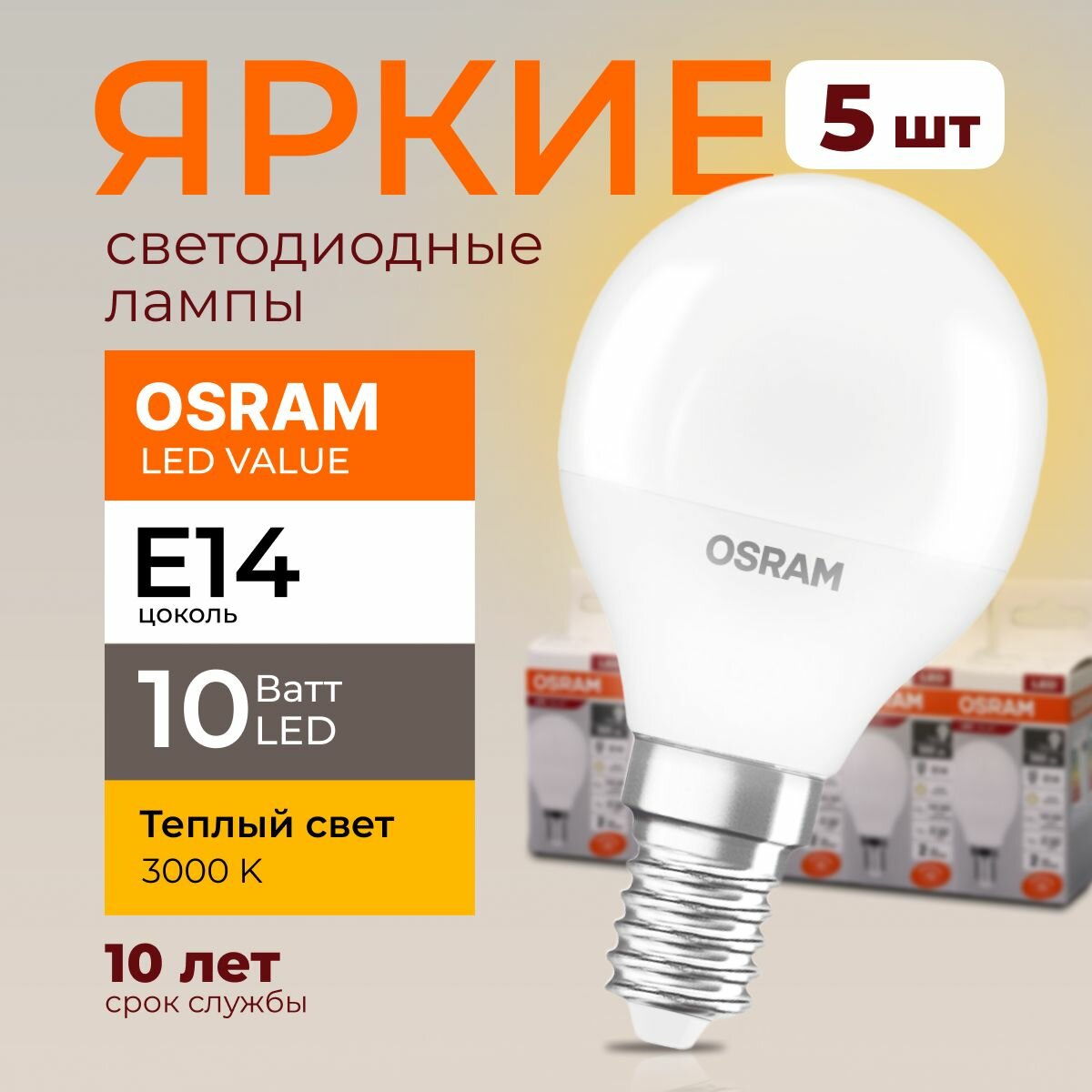 Отзывы на Лампочка светодиодная Osram шар 10 Ватт E14 теплый свет 3000K Led LV CLP FR матовая 800 лм набор 5шт