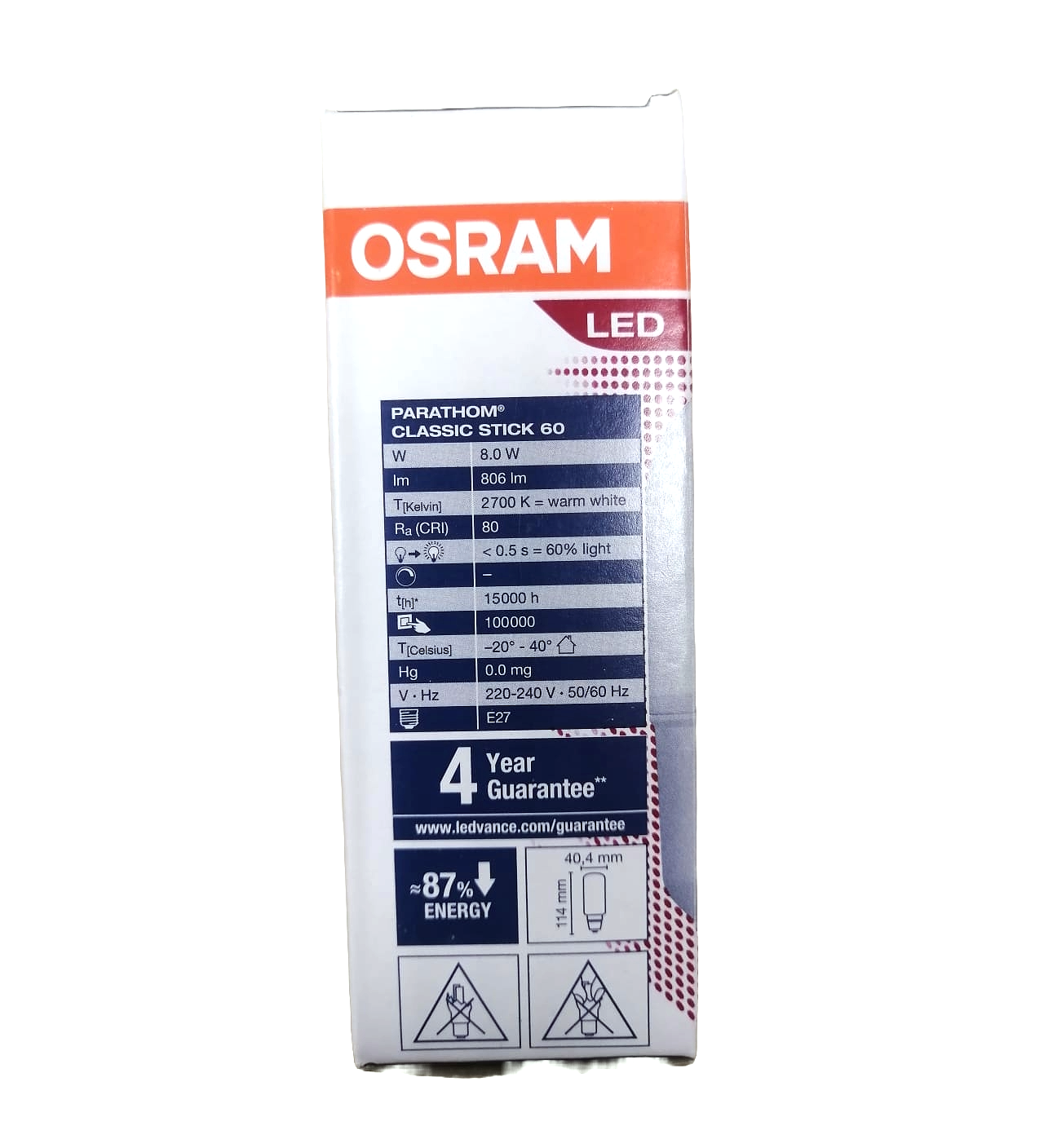 Светодиодная лампа Osram PARATHOM CL STICK FR 60 8 Вт 2700K E27 LED, 4058075292635 информация: