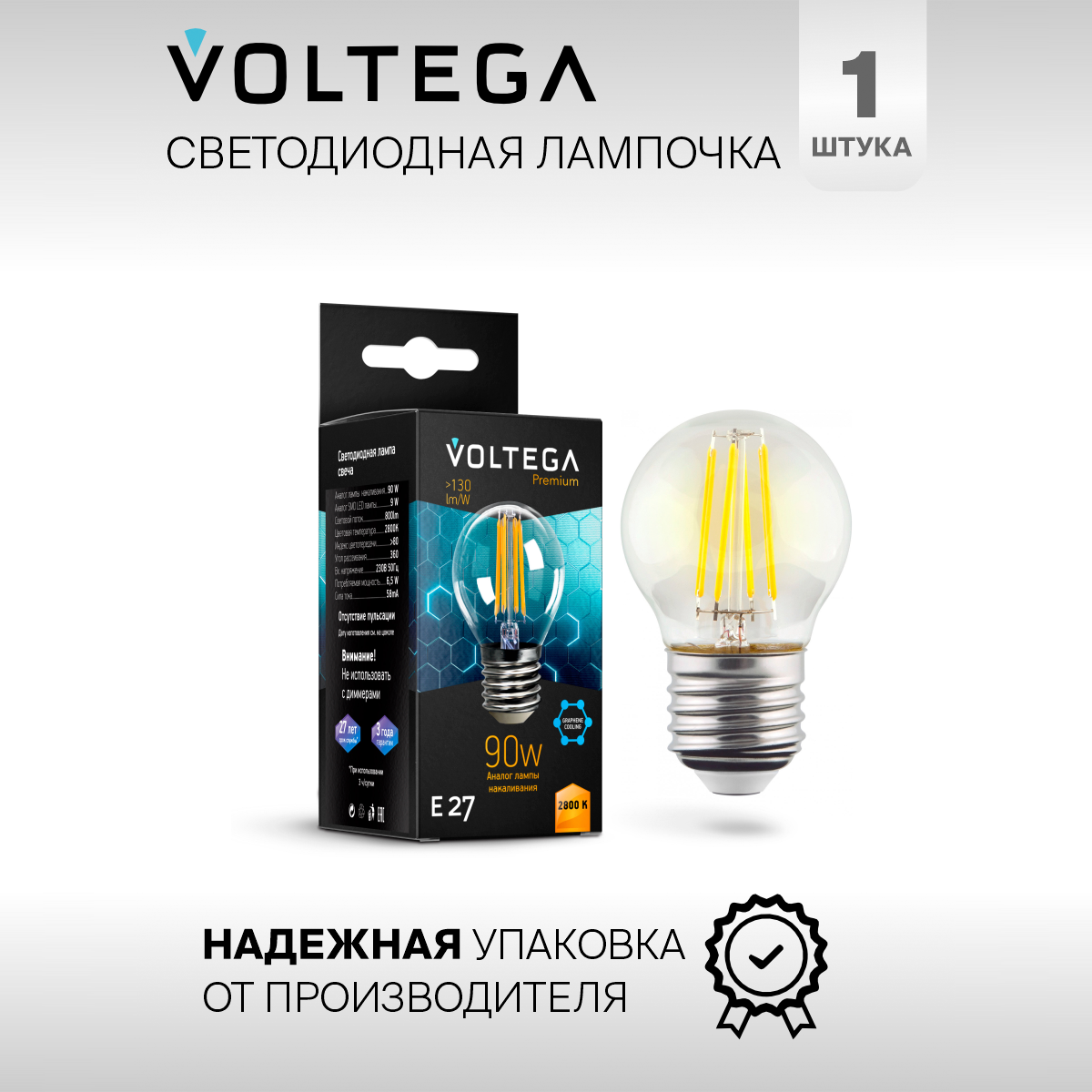 Отзывы на Лампочка светодиодная E27 форма груши 9W теплый свет Voltega Crystal Graphene Globe 2800K 1 штука