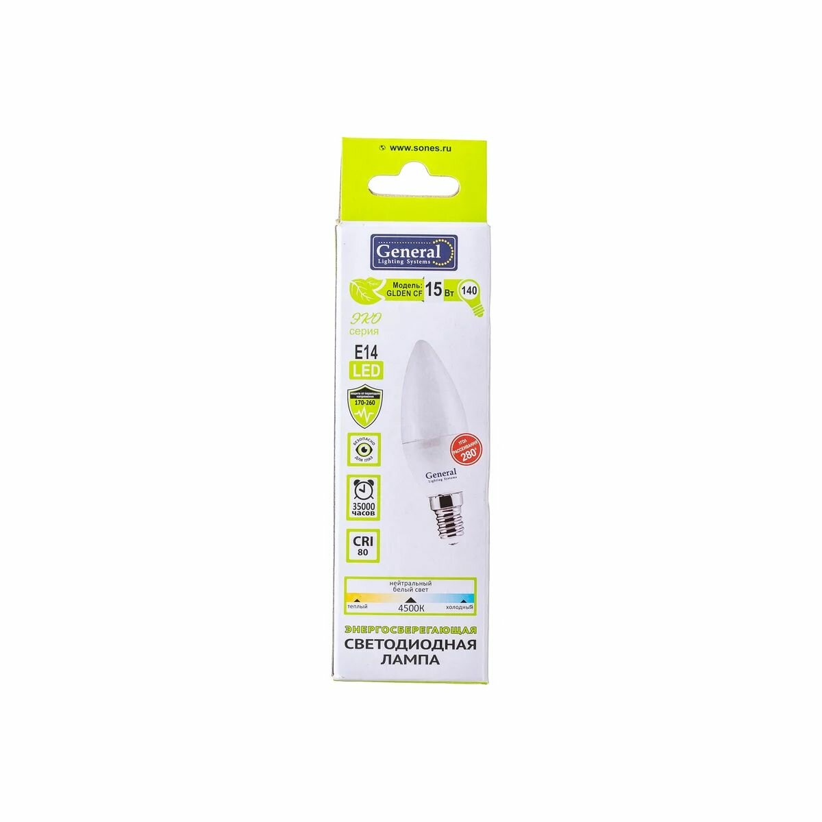 Комплект 3шт / Лампа светодиодная (LED) свеча 15Вт 220В E14 4500K 1050лм General информация: