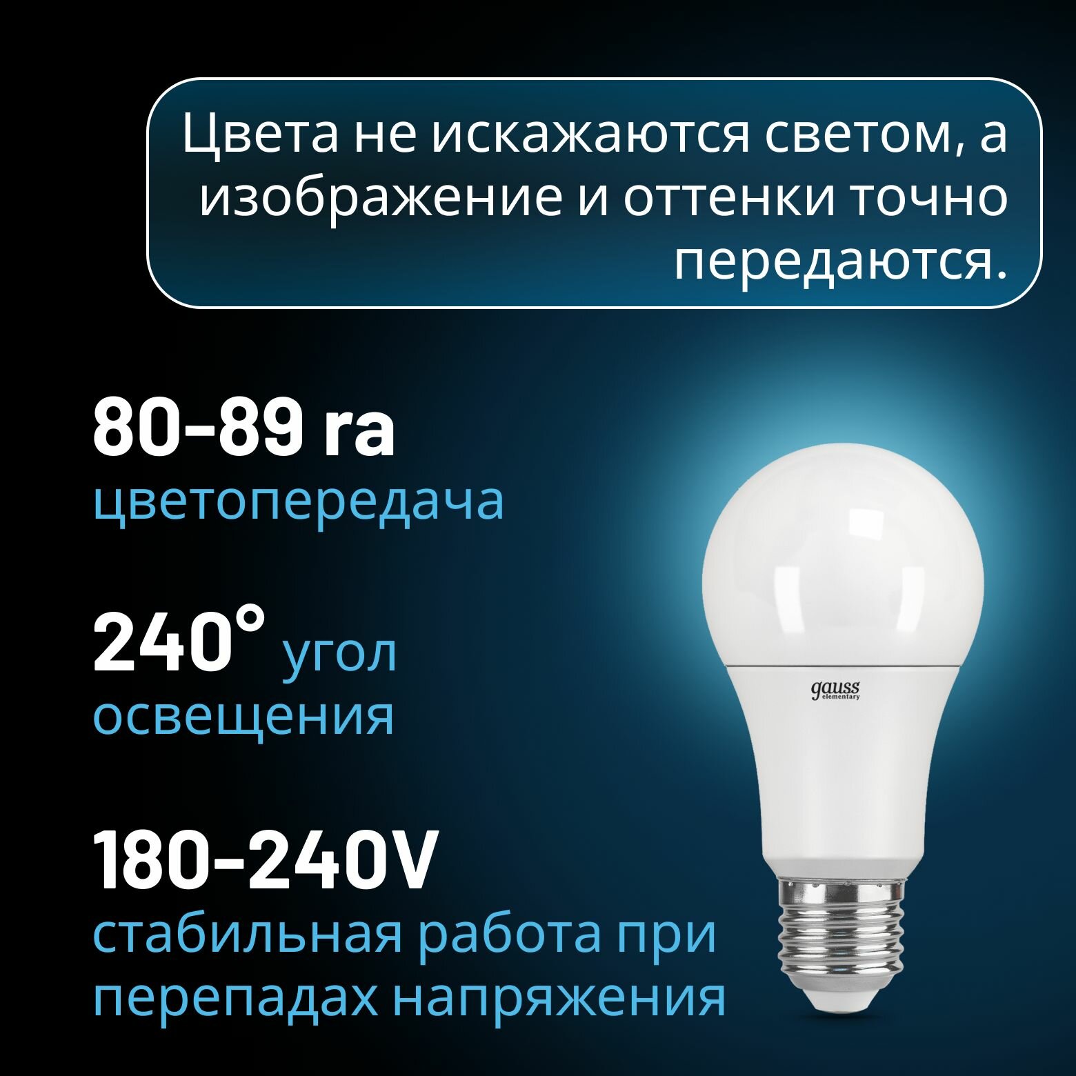 Лампа светодиодная Elementary 10Вт A60 грушевидная 6500К холод. бел. E27 950лм GAUSS 5шт информация: