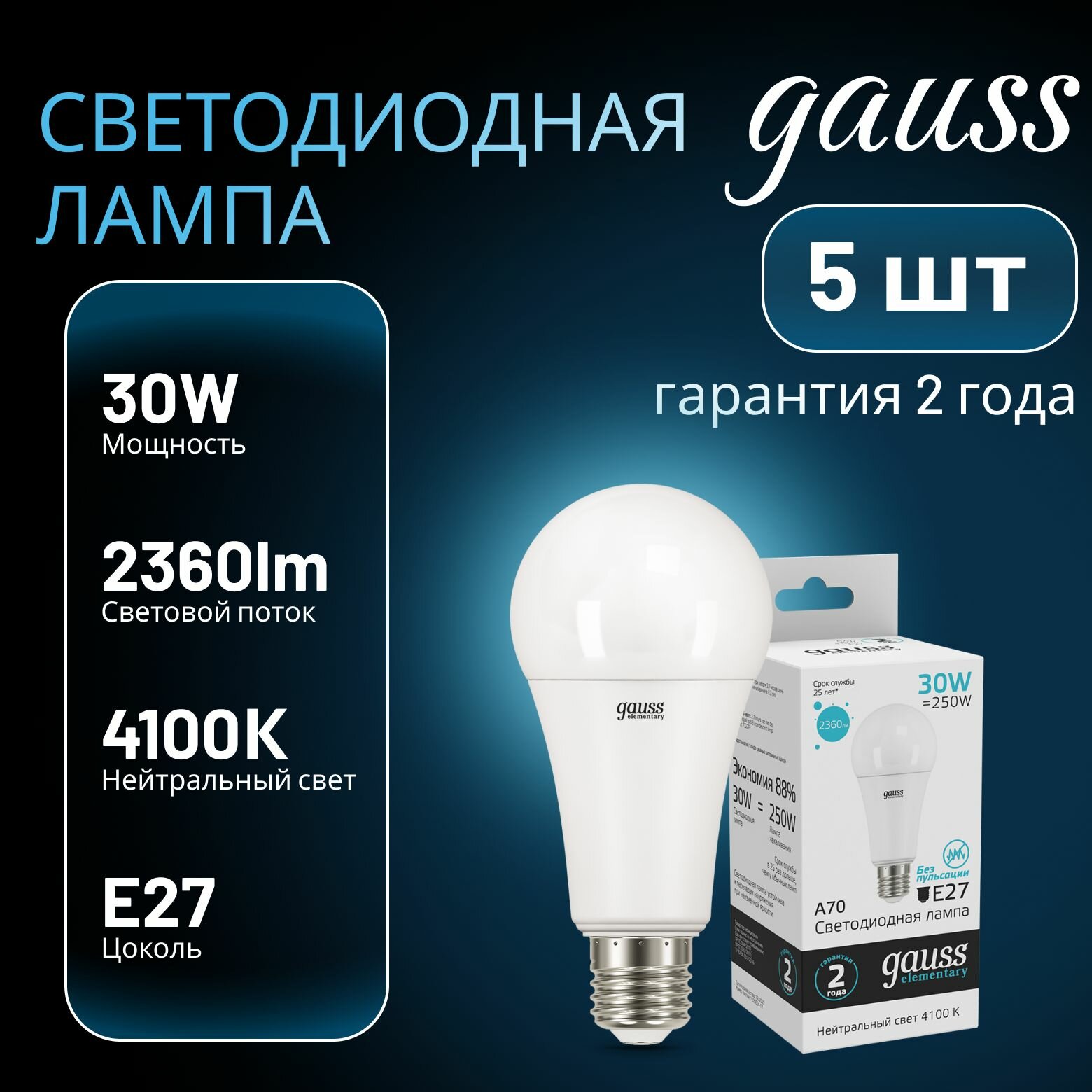 Отзывы на Лампа светодиодная Elementary 30Вт A67 грушевидная 4100К нейтр. бел. E27 2360лм GAUSS 5шт