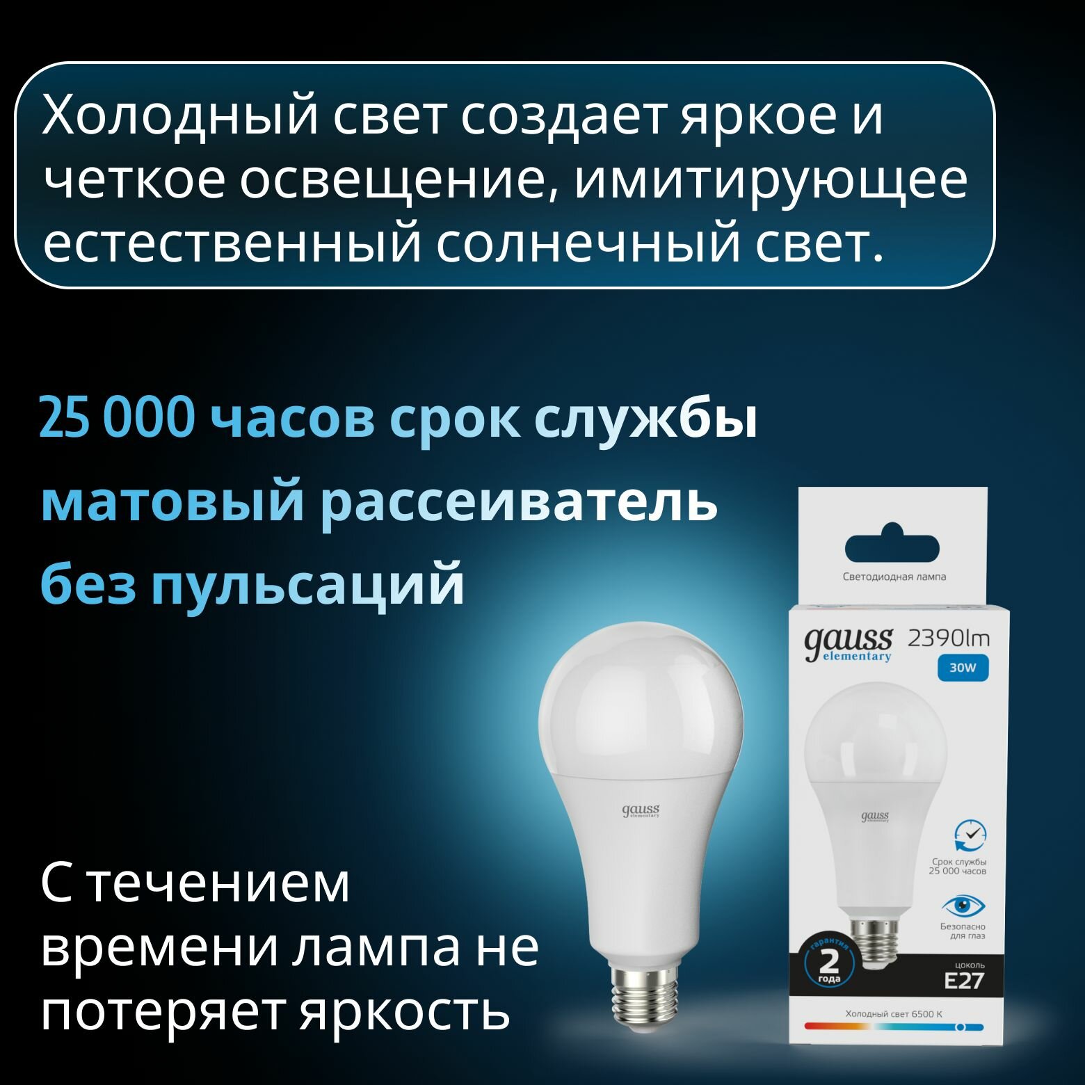 Отзывы на Лампа светодиодная Elementary 30Вт A70 грушевидная 6500К холод. бел. E27 2390лм GAUSS 10шт