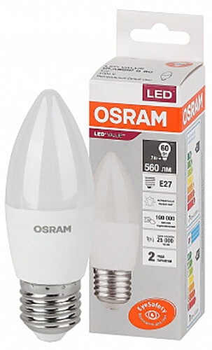 Отзывы на 5шт/уп. Лампа LED Свечка 7Вт 220-240В E27 560Лм 4000К Угол 200 град. d 38mm h 105mm Свет Дневной белый Osram, уп. 5шт