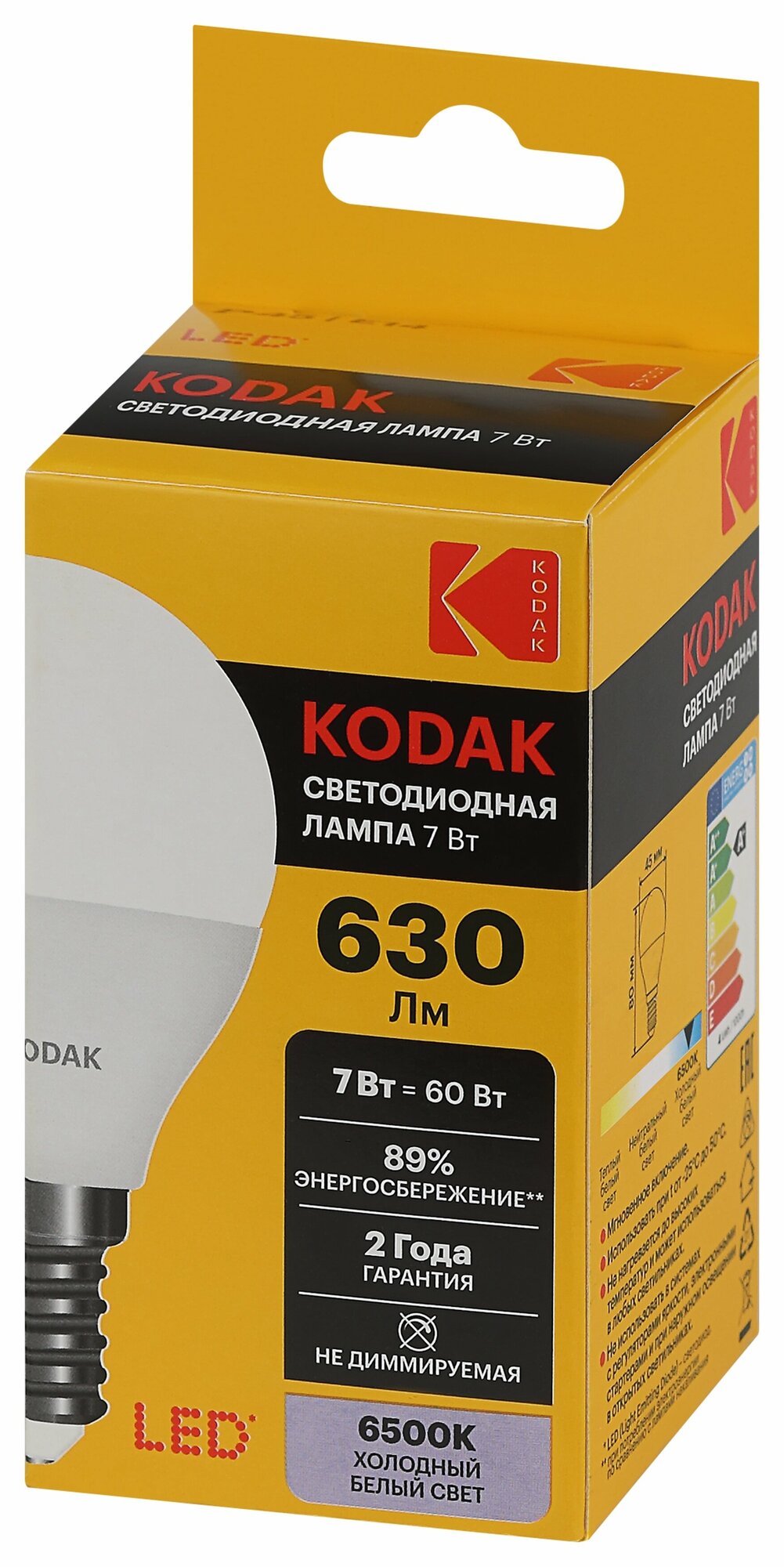Лампочка светодиодная Kodak LED KODAK P45-7W-865-E14 7Вт шар холодный дневной свет информация: