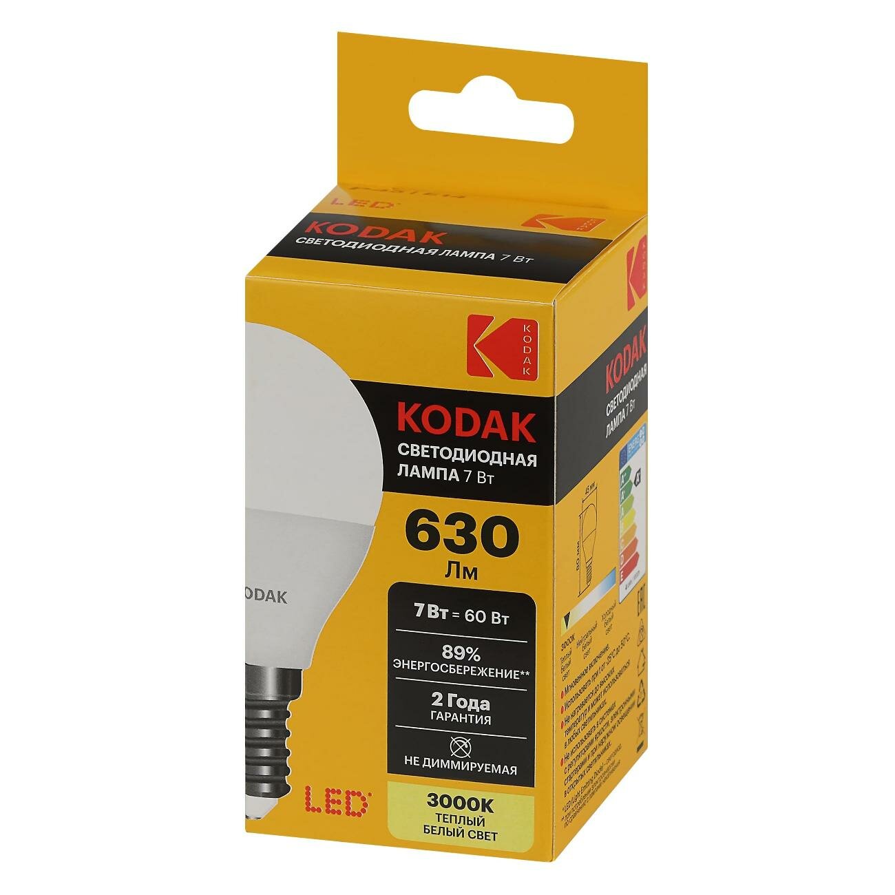 Лампочка светодиодная Kodak LED KODAK P45-7W-830-E14 7Вт шар теплый белый свет информация: