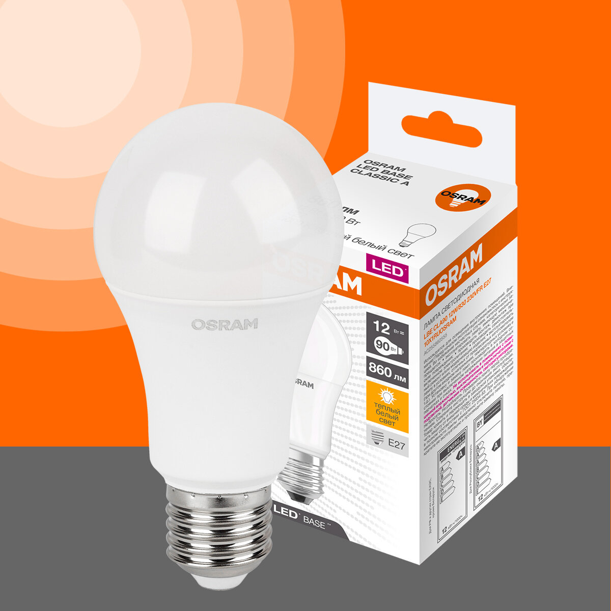 Отзывы на Лампа E27 Osram LED BASE CLASSIC A90 12W/830, 860лм, 3000К, теплый свет, светодиодная, матовая, 10 шт