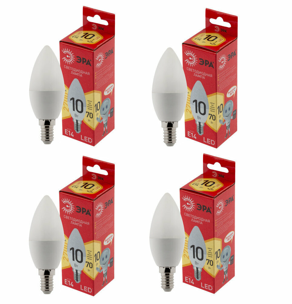 Отзывы на Лампа светодиодная В35-10W-827-E14 R свеча теплый белый свет (комплект 4 шт.)