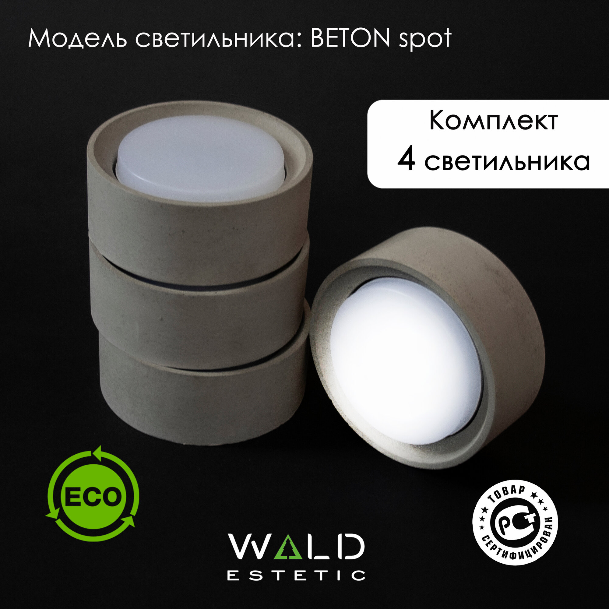 10 цен на Светильник потолочный Beton Spot от Wald Estetic, бетон, цоколь GX53, мощность 8.5W комплект 4шт