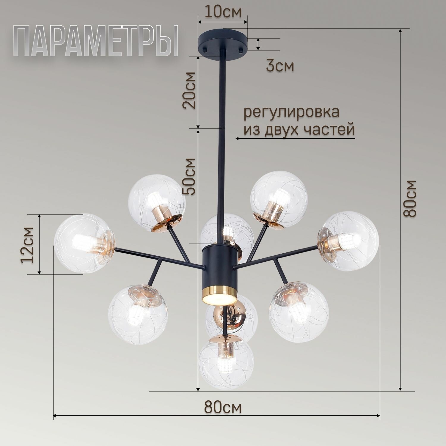 Люстра потолочная лофт, люстра подвесная Элиссвет 11296HX-9 BK информация: