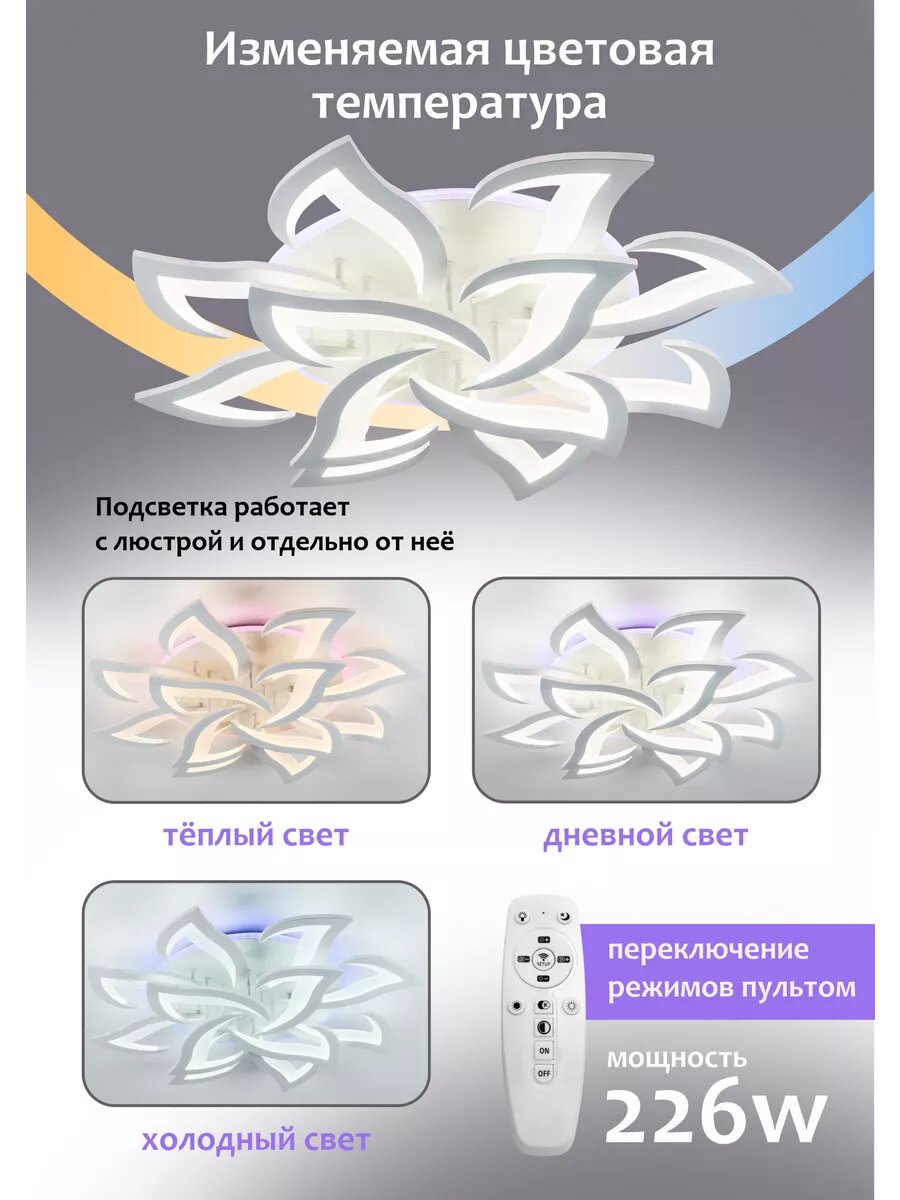 Люстра потолочная светодиодная YA2410-9 WH ночник с пультом для низких потолков 7 714 ₽